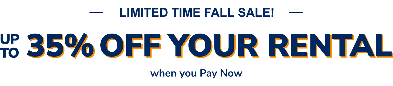 • The savings of up to 35% applies to Budget PAY NOW rates and is applicable only to the time and mileage charges of the rental.